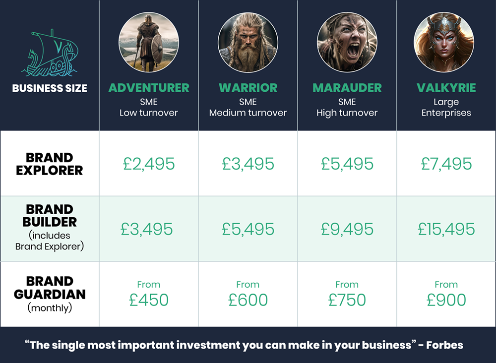 Use the pricing table, below, as a guide and the button at the bottom of the page to set up a conversation about your ambitions.